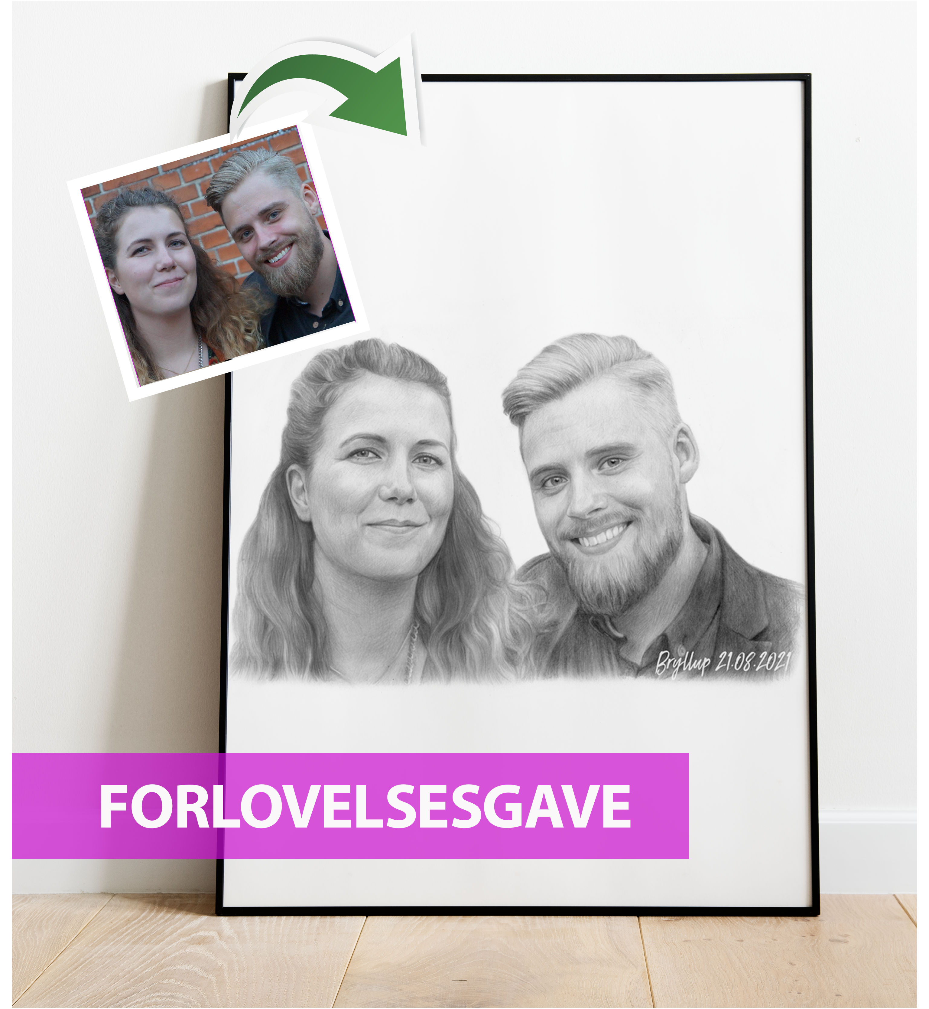 Giv en personlig håndtegnet portrættegning som forlovelsesgave. Det vil være den perfekte gave til forlovelsesparret.