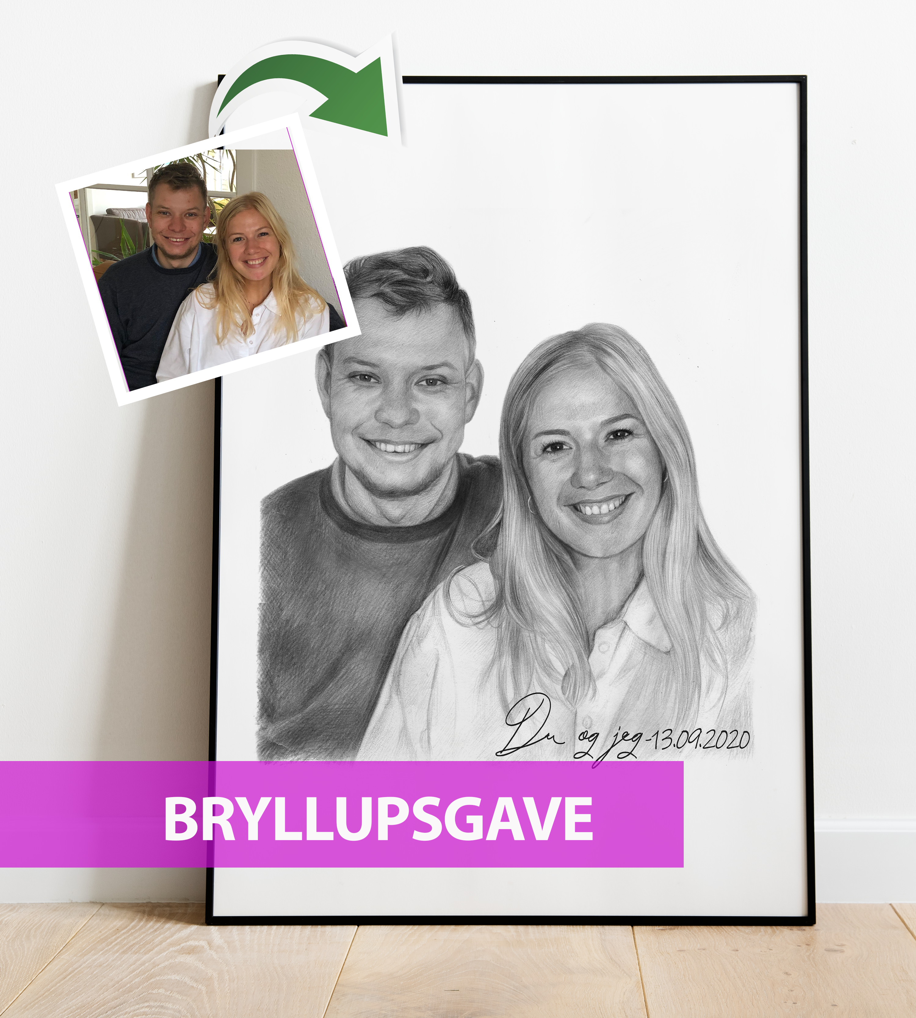 Bestil en personlig håndtegnet portrættegning som bryllupsgave. Det vil være den perfekte gave til bryllupsparret.