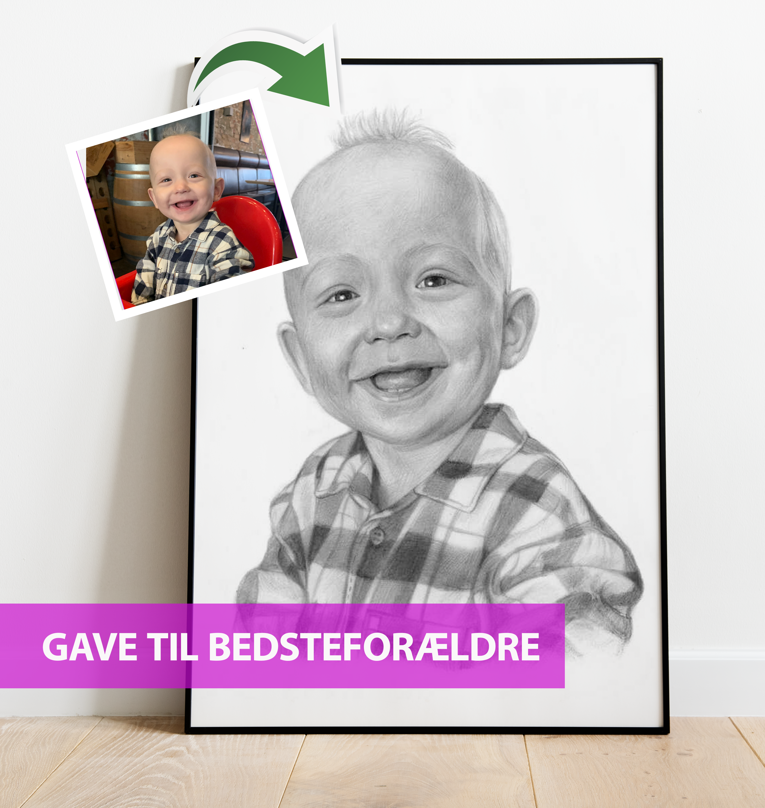 Bestil en personlig håndtegnet portrættegning som gave til bedsteforældre. Det vil være den perfekte gave til bedsteforældrene.
