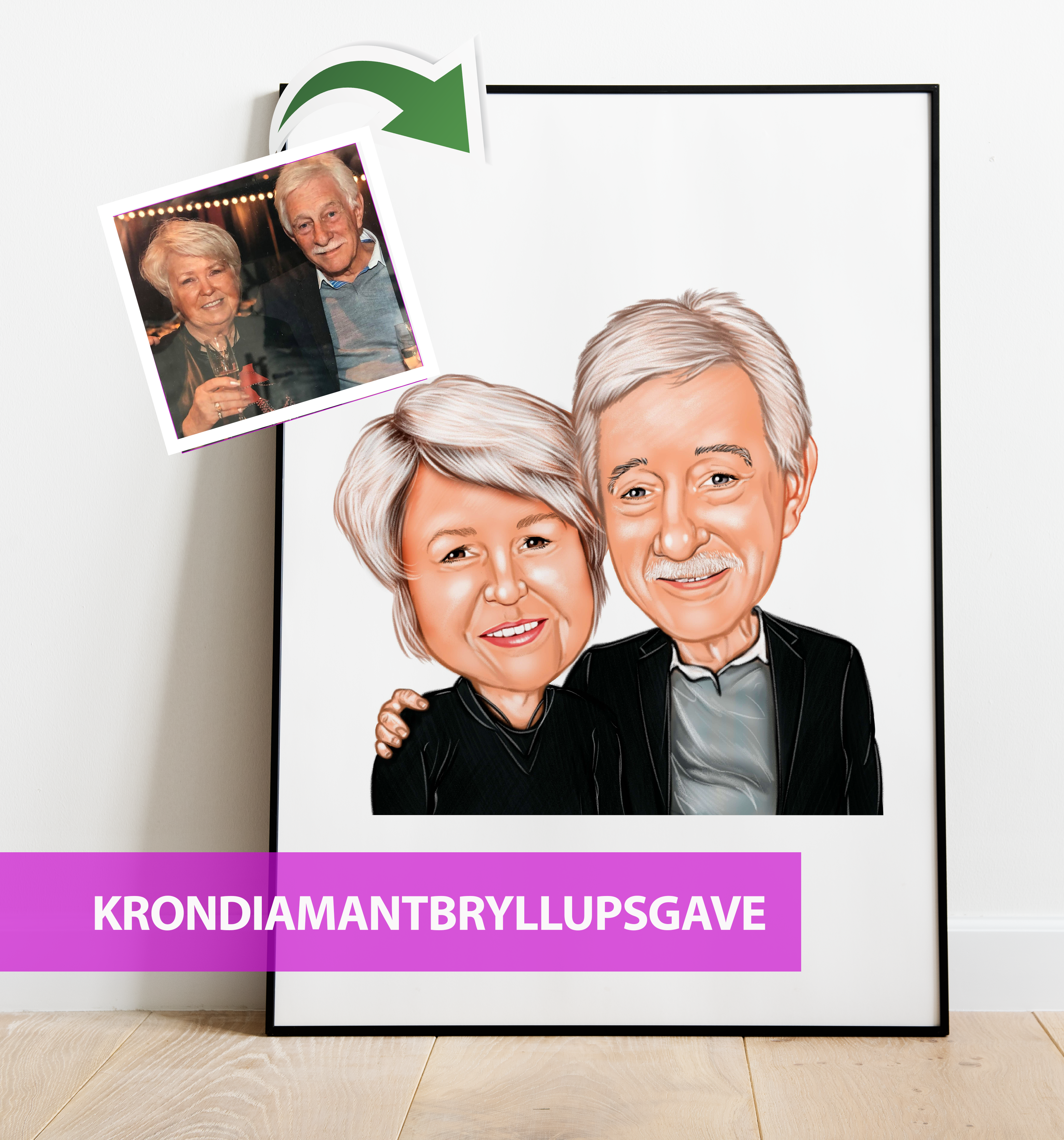Krondiamantbryllupsgave - karikaturtegning efter dine fotos