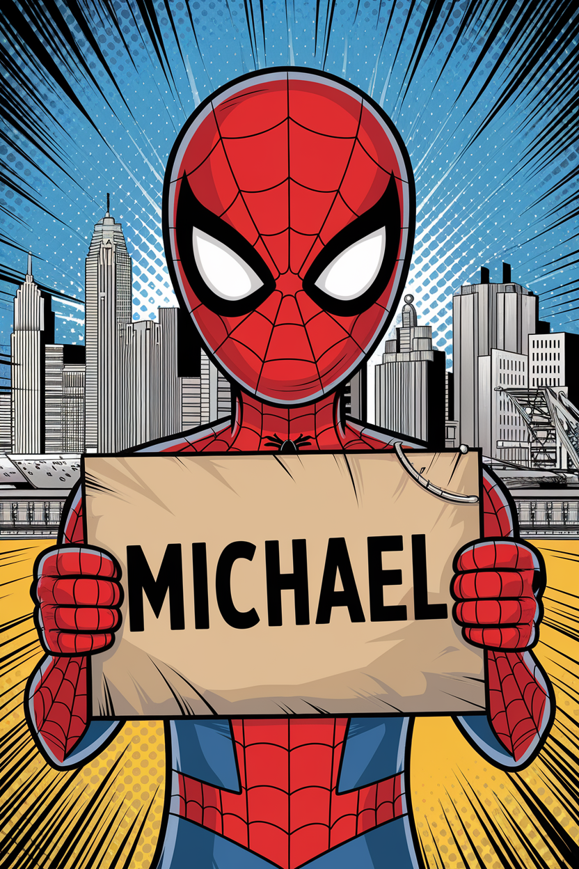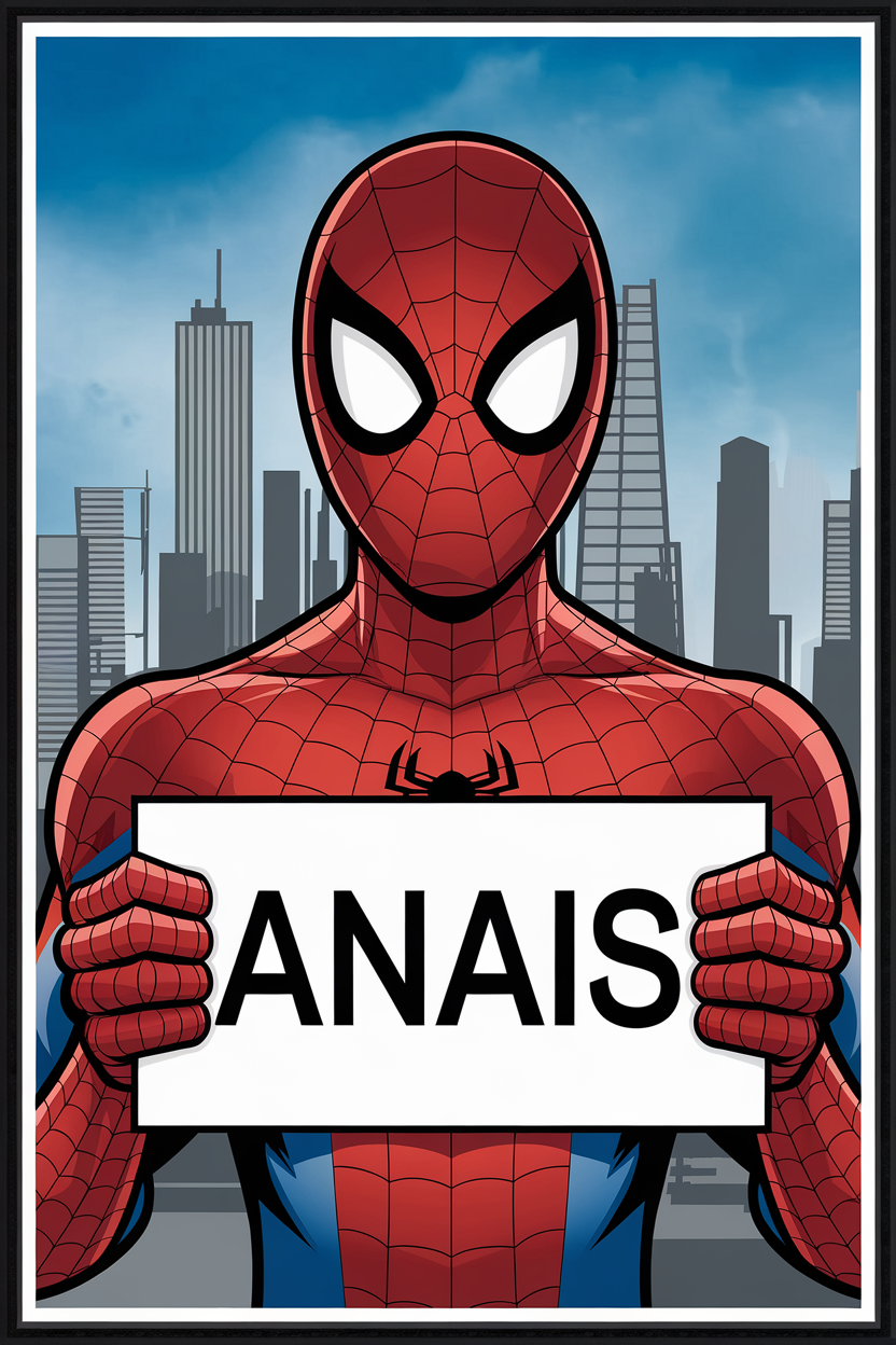 Det er hurtigt og nemt at bestille din personlige Spider-Man navneplakat. Indtast blot det ønskede navn i bestillingsfeltet, og vi sørger for resten. Plakaten leveres hurtigt og klar til at blive hængt op, så du kan nyde den med det samme.